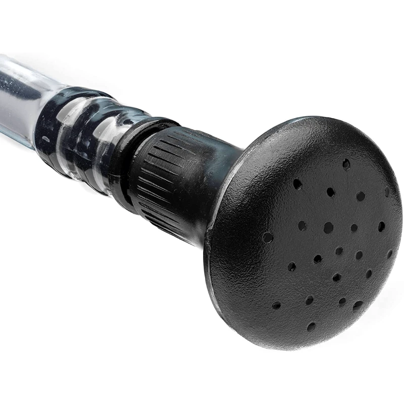 - Storage compartment: Mesh compartment to stow toiletries and hose when not in use.