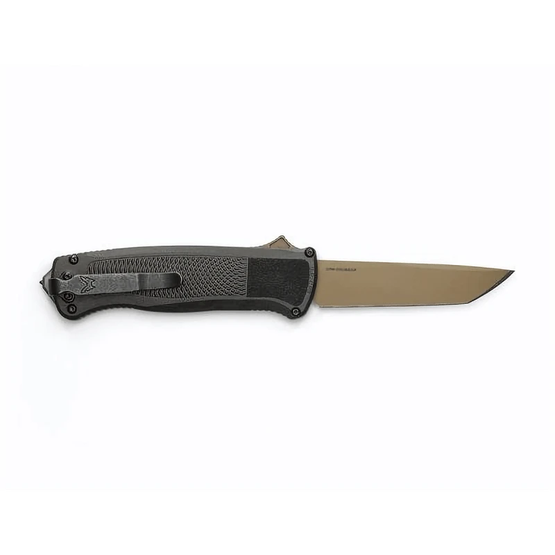 The SHOOTOUT double-action out-the-front automatic is the perfect off-hand backup. The molded CF-Elite handle features a detailed grip texture that provides fast indexing and greater control in high-pressure scenarios. At the same time, the Flat Earth PVD coated CPM-CruWear blade offers high strength and durability for all cutting tasks. A carbide glass breaker and a reversible pocket clip round out this versatile tool. Made in the USA and fully loaded with Benchmade’s latest tech, the SHOOTOUT packs a punch.