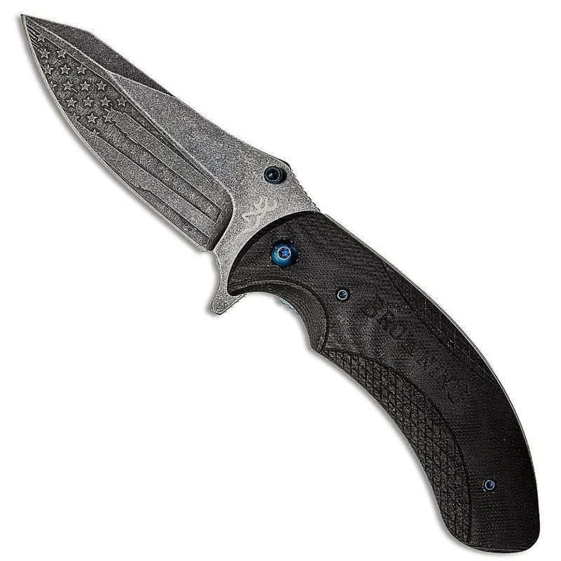 Established to be the perfect blade for almost any situation, the Browning Knife Patriot Large Folder 3.5″ Etched Stars/Stripes Blade is outstanding for any time in which an outstanding edge is the key to success. These Knives from the skilled professionals at Browning are made using top of the line blade components that will maintain an edge for extended periods of time before necessitating care.