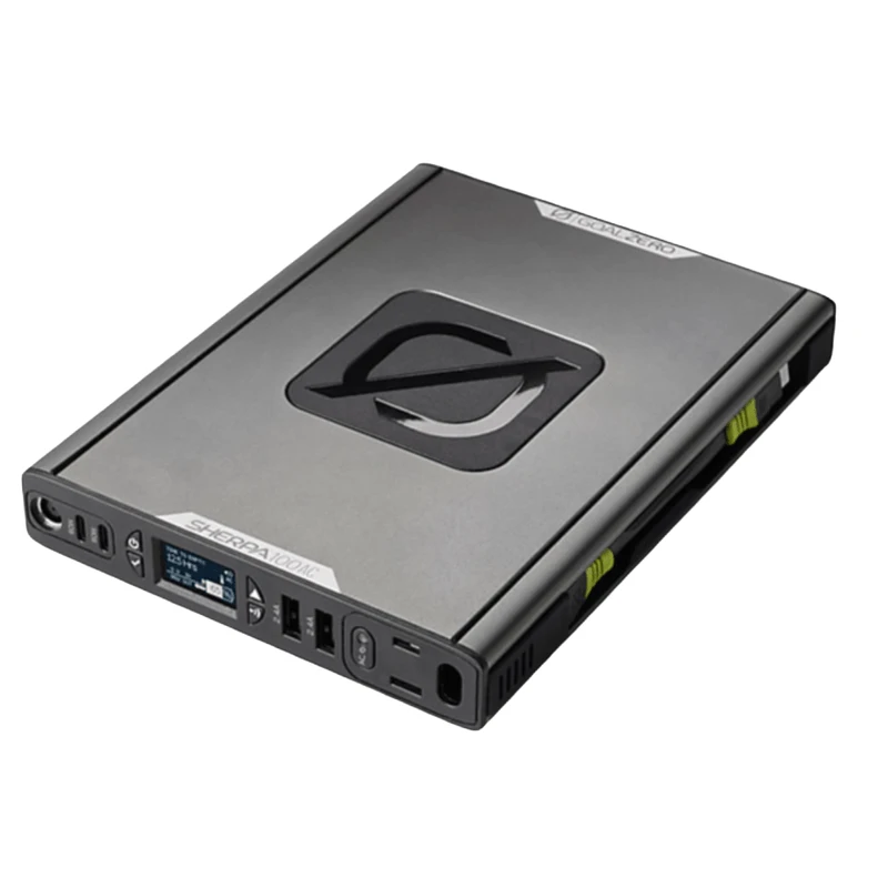 The Goal Zero Sherpa 100AC Power Bank is a high speed power bank for your smaller devices. Airline travel ready, this can power your phone, tablet, camera, and your laptop. It features two high-speed power delivery ports, 60W each, plus Qi wireless charging, and 2.4A USB. Stay powered up throughout your travel adventures.