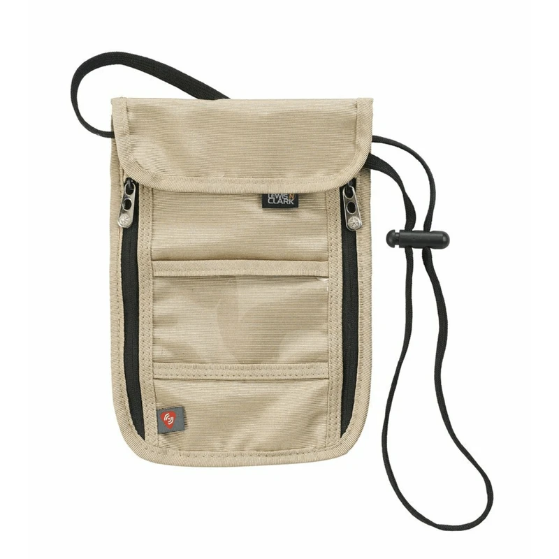 The Lewis N. Clark Neck RFID Stash protects you from identity theft. Keep your valuables around your neck and out of sight with radio-frequency identification (RFID) protection designed to stop electronic pickpockets and identity thieves in their tracks. The 7.5″ x 5.5″ neck stash includes 1″ – 25.5″ of neck strap adjustability for all-day comfort and concealment. Four separate compartments, including an ID window, are secured with a hook and loop fastener to keep your documents where they belong. 100% nylon TravelDry construction moves moisture away from your skin, decreases drying time, reduces potential for shrinking and mildew, and resists odor.Â