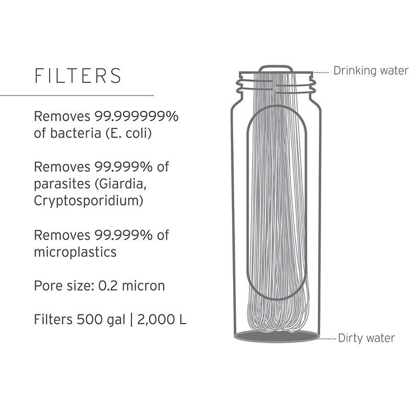 - Protects against 99.999999% of bacteria, 99.999% of parasites and 99.999% of microplastics, silt, sand, and cloudiness