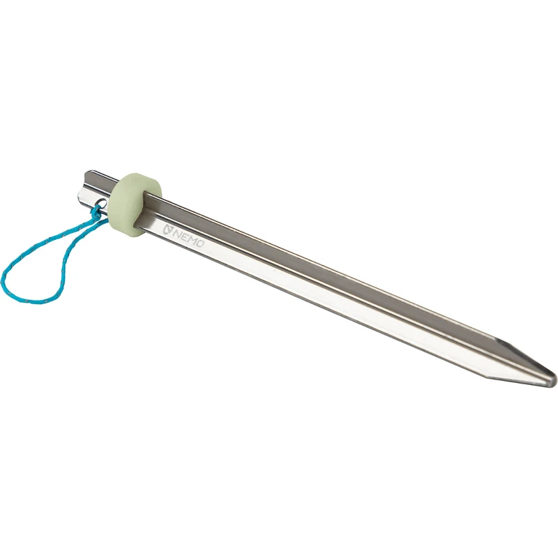 The NEMO Sweep Stake is an aluminum tent stake that cleans easy. Equipped with an integrated biscuit, push it down the length of the stake after taking it out of the dirt, and the dirt is pushed away and off. All the icky stuff stays out of your stake stuff sack, for a cleaner pack during the adventure.