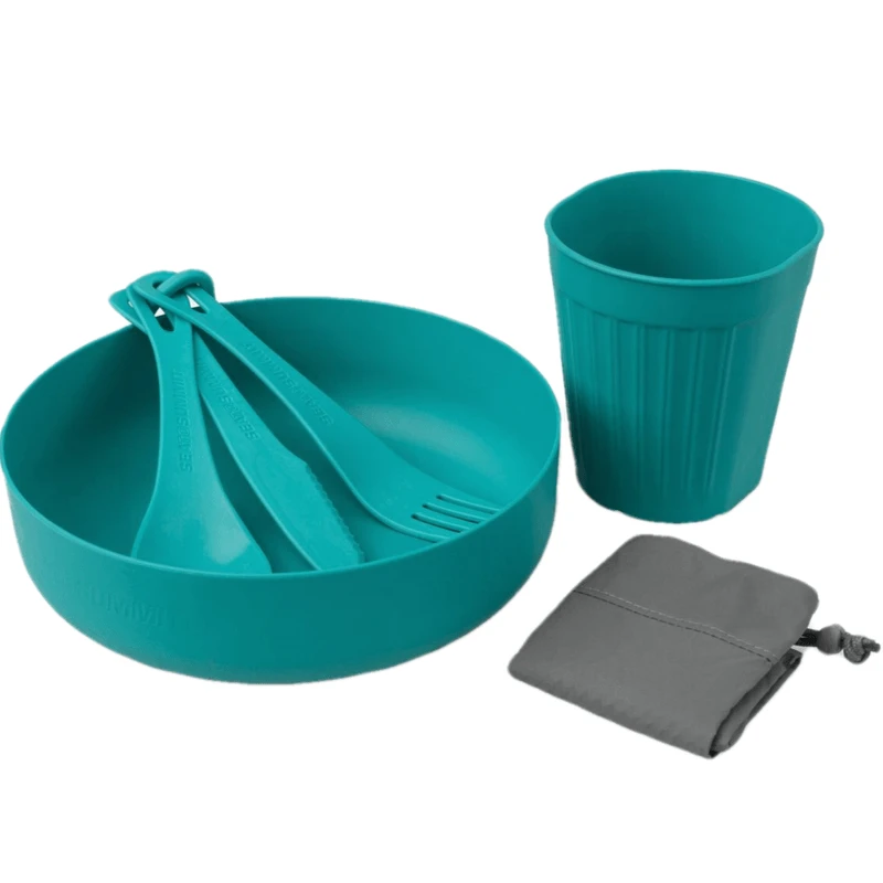 A space-saving dinnerware set for solo adventurers that includes a Delta Light Bowl, Mug and Delta Cutlery Set. Nests and stows inside a lightweight storage pouch and is designed to also nest inside the Sea to Summit Alpha and Sigma Pot 2.7L. Made with BPA-free, glass-reinforced polypropylene, the Delta Light bowls, Mugs, and Cutlery Sets are durable, lightweight, easy-care and microwave and dishwasher safe.