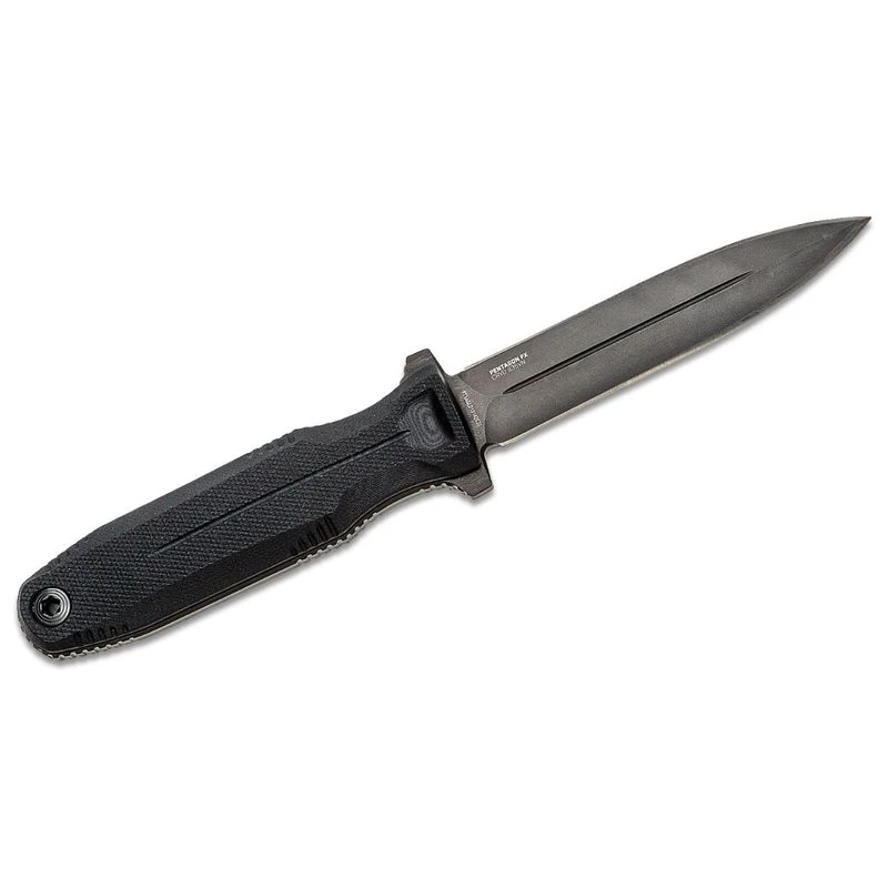 Representing an evolutionary step in hard-use fixed blades, Pentagon FX is a full-sized knife made for the modern-day warfighter. It features a double-edge CYRO CPM-S35VN full-tang steel blade, removable G10 handles, and a GRN sheath compatible with SOG’s next-generation Universal Mounting System. It’s fully customizable to meet the demands of various missions and purposefully designed to exceed expectations.