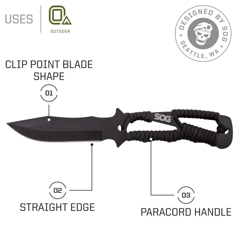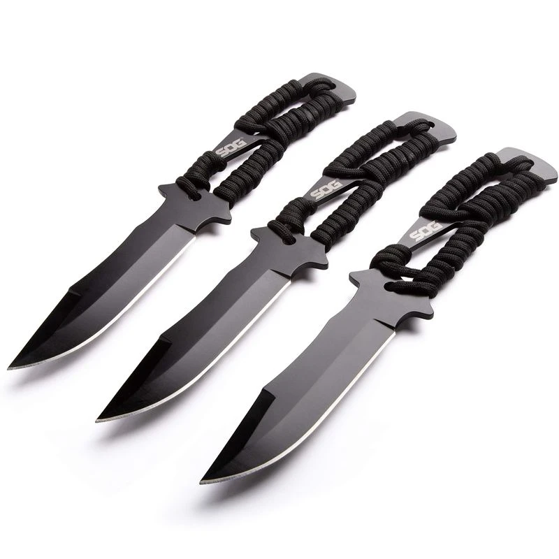 These SOG Throwing Knives – 3 Pack, stylized knives are not only fun to sail through the air, they are practical as well. Protected by SOG’s hardcased black coating, they are extremely scratch resistant. Their balance, aerodynamics, and proportions make them great throwing knives. For the same reasons, they also make great back-up field knives. Handles are wrapped with paracord or use without it and you have three knives for the price of one! Includes nylon sheath that safely carries all three.