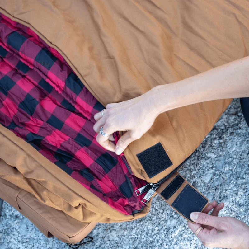 - Two-way L-zipper means you can easily turn your Bridger into a camp blanket.