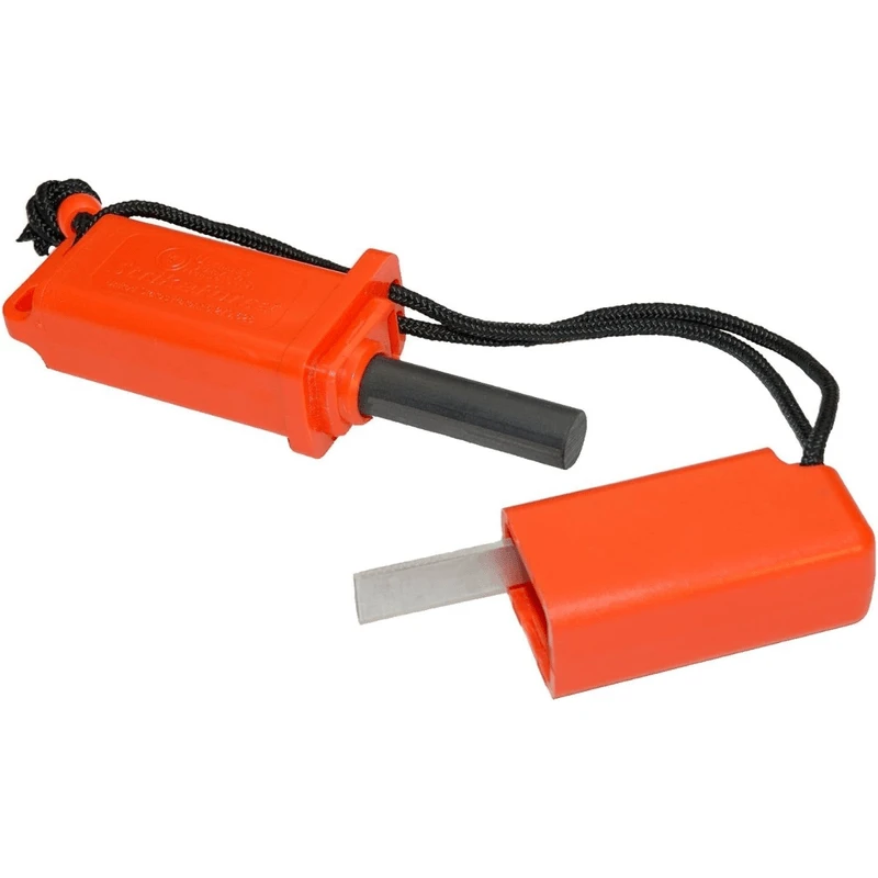 The StrikeForce Fire Starter with Tinder is a high-performance, flint-based fire starter that generates three times the heat of an ordinary match and will last up to 4,000 strikes.